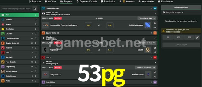 O 53pg oferece uma grande seleção de opções de apostas em e-sports com probabilidades competitivas